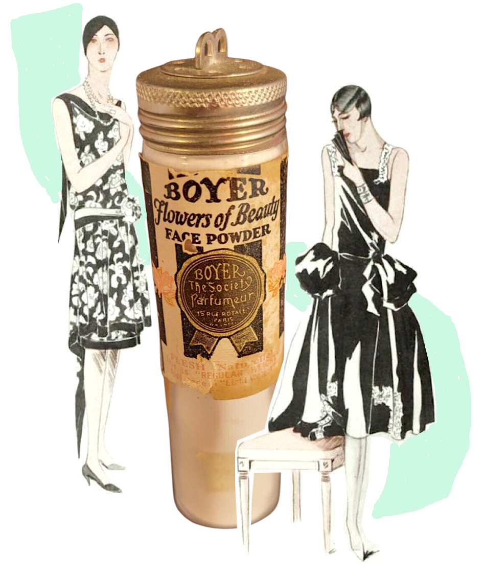 “Boyer’s ‘Flowers of Beauty’ Face Powder instantly removes shine, stays on longer, and imparts a youthful, satiny texture so admired and envied,” read a 1931 in Photoplay magazine. “This powder does not cake or chalk. It is pure and cannot harm the most delicate complexion.”