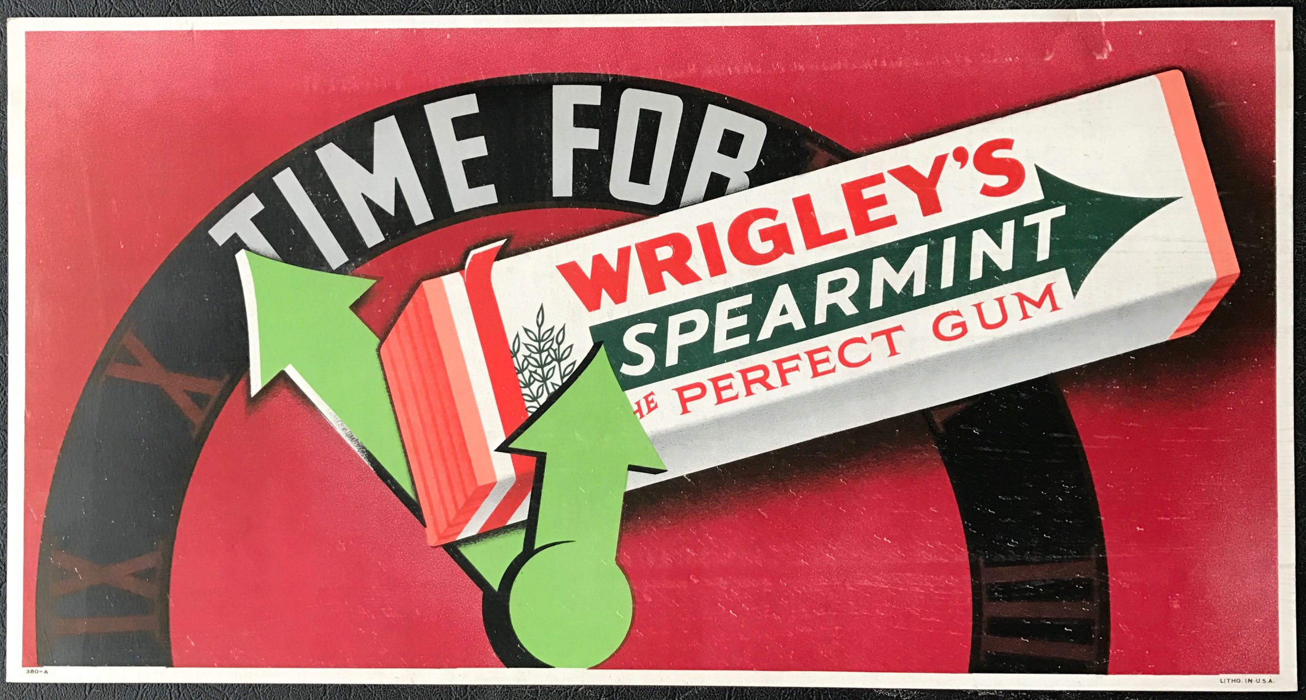For nearly 20 years, Wrigley was really more of a distribution man, focusing on ad campaigns, display strategies for merchants, and incentive packages for prospective gum dealers (many Wrigley candy scales were produced for this purpose, likely manufactured—based on the designs—by Chicago’s American Cutlery Company). He took enormous risks throwing piles of money at billboards and magazine advertising across the country. Meanwhile, all Wrigley gum, including the popular Spearmint, Juicy Fruit, and Doublemint brands, were manufactured by Chicago’s Zeno Gum Company, as they had been from the beginning.